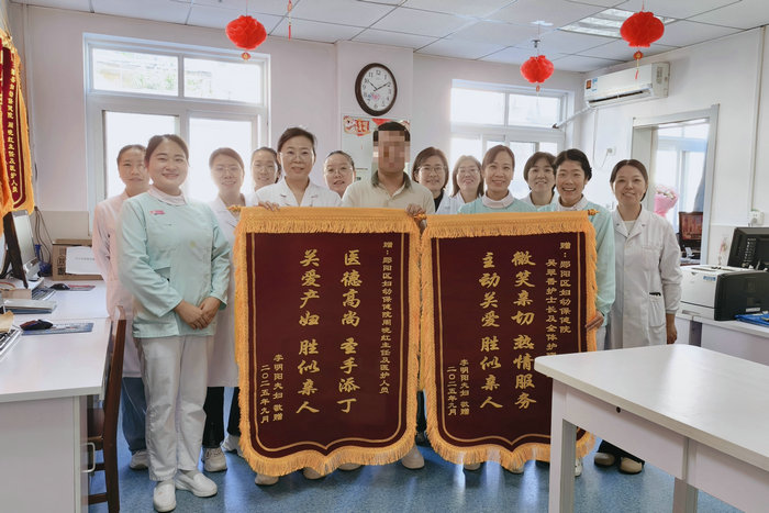 一面锦旗,一份重托。今日,我院产科收到了一份特殊的感谢——曾在科室接受保胎治疗的谢女士,在顺利剖宫产分娩、康复出院后,特意将写有感谢话语的锦旗送到周晓红主任医疗团队与吴翠香护士长护理团队手中,用最质朴的方式,表达了对医护人员的认可与感激。