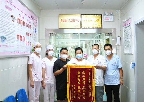 35周、体重只有2.23公斤的早产小宝宝刚出生即被送进了新生儿科,8月22日下午,“分开”13天后,小宝宝一家终于接宝宝回家,而此时,宝宝的体重已达到正常标准,各项指标正常。为了感激医护人员对宝宝无微不至的照顾,家属特为新生儿科医护人员送上锦旗。