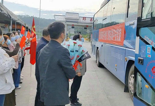 10月13日下午,郧阳区妇幼保健院支援郧西县的50名核酸采样队员圆满完成工作任务,郧阳区副区长何珊及医院院长潘喜华带队在柳陂高速路口迎接队员平安归来。