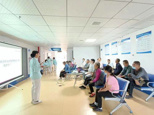 随后,由血液净化室的资深责任组长况琳琳带来了科普知识讲座--血透高血压患者的饮食及营养调理,通过简单易懂的讲解,图文并茂的演示,将科普知识传递给肾友们。焦红仙护士长根据自己临床护理经验为肾友们分享了血液透析好朋友--动静脉瘘管的科普视频,讲述了动静脉内瘘作为血液透析治疗生命线的重要性,教会患者如何做内瘘操,日常生活中保护动静脉内瘘的方法。