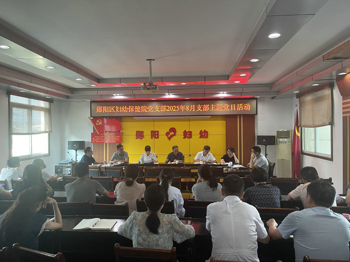 2025年8月22日下午3点30分,郧阳区妇幼保健院院党支部全体党员在行政后勤三楼党员活动室召开8月“支部主题党日”活动会议,会议由院长潘喜华主持,主题为重温习近平总书记重要回信精神,当好忠诚守井人。